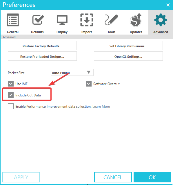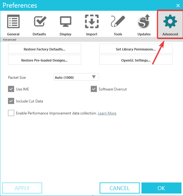 - Navigate to the Settings in Silhouette Studio and select Preferences and then Advanced.