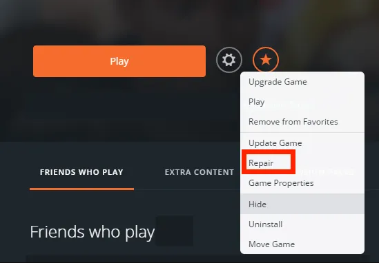 Accessing the Origin Game Library - Next, click on the gear button associated with Sims 4 and click on Repair from the newly appeared context menu.