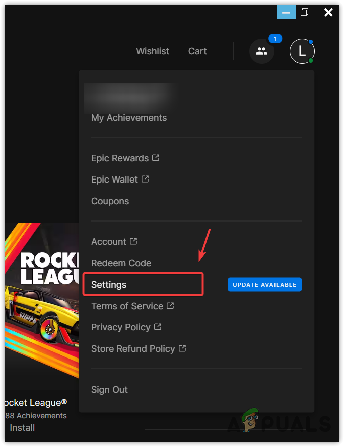 - In the Epic Games Launcher, click on your profile at the top right and select Settings.