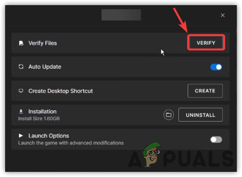 - Click Verify. Afterwards, try launching the game to determine whether the issue is fixed.