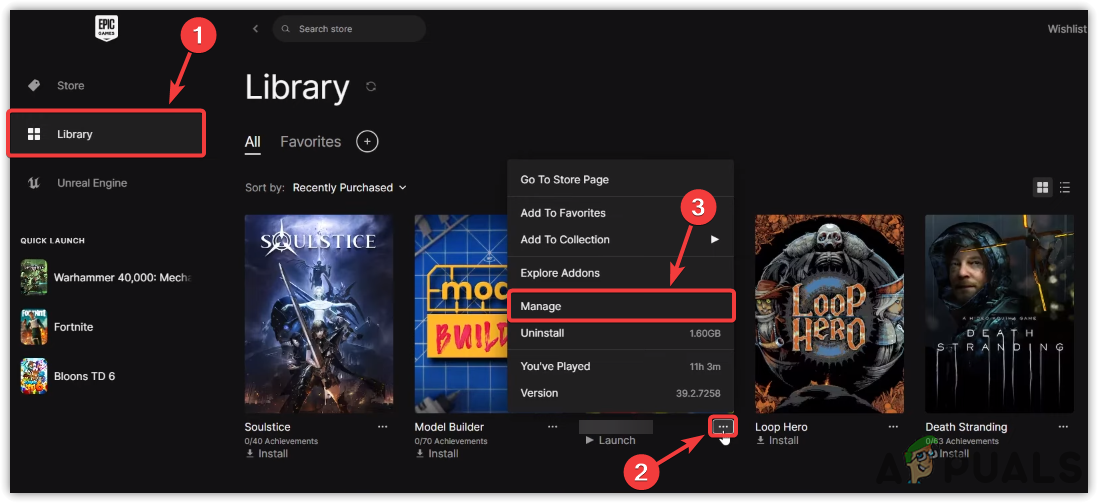 - In the Library, click the three dots on Skull and Bones and select Manage.