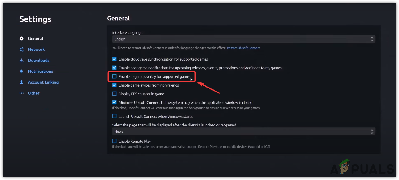 If the in-game overlay feature is enabled in your Ubisoft settings, consider disabling it before proceeding with further solutions. Overlays can consume significant memory, potentially causing launch or crash issues.