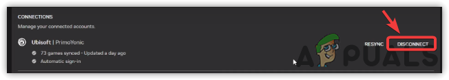 - From the right pane listed under Connections, disconnect Ubisoft.