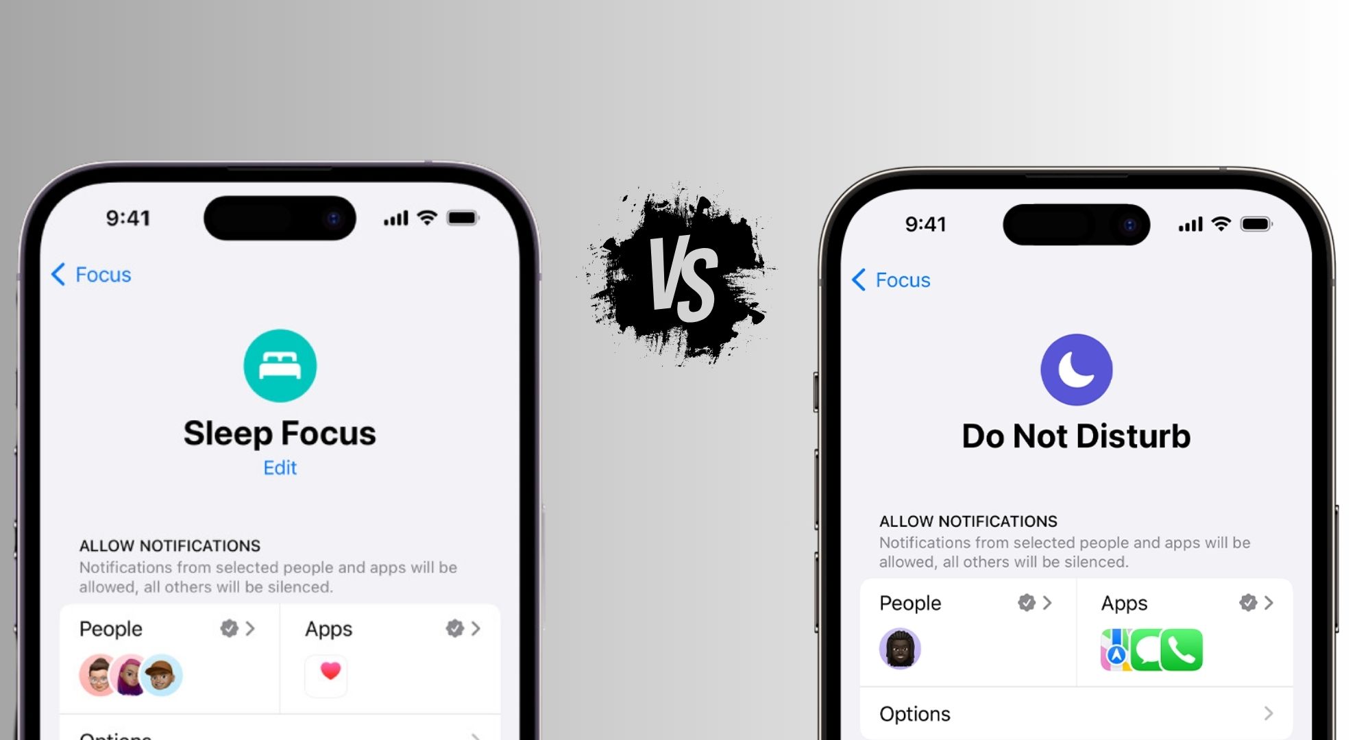 Sleep Mode and Do Not Disturb (DND) are quite similar, both quieting notifications and allowing customized contact access.