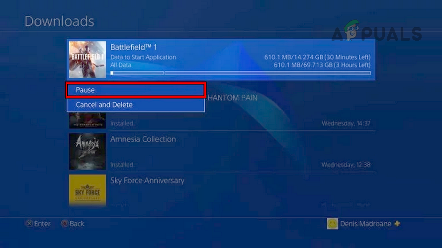 - Head to the Downloads tab on your PS4’s Dashboard and select the game or content being downloaded.