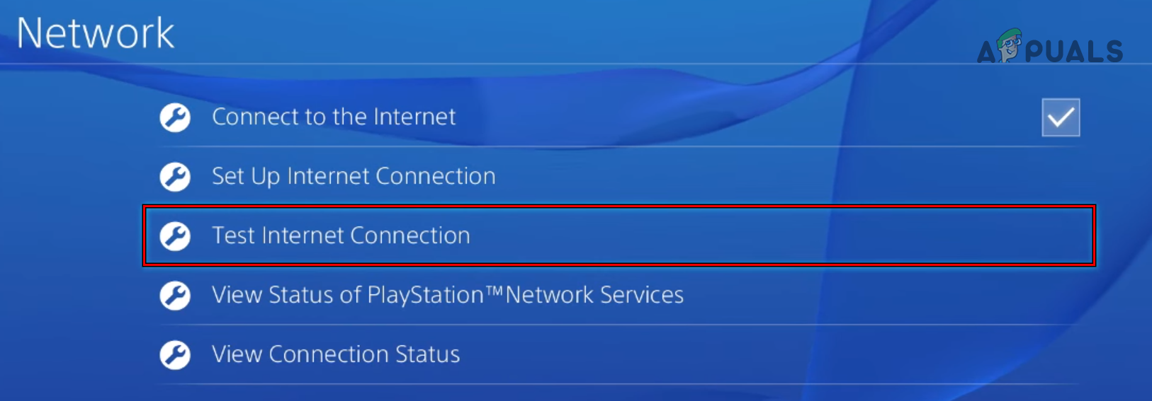 Open Network in the Settings of PS4 - Then open Test Internet Connection and wait till the test completes.