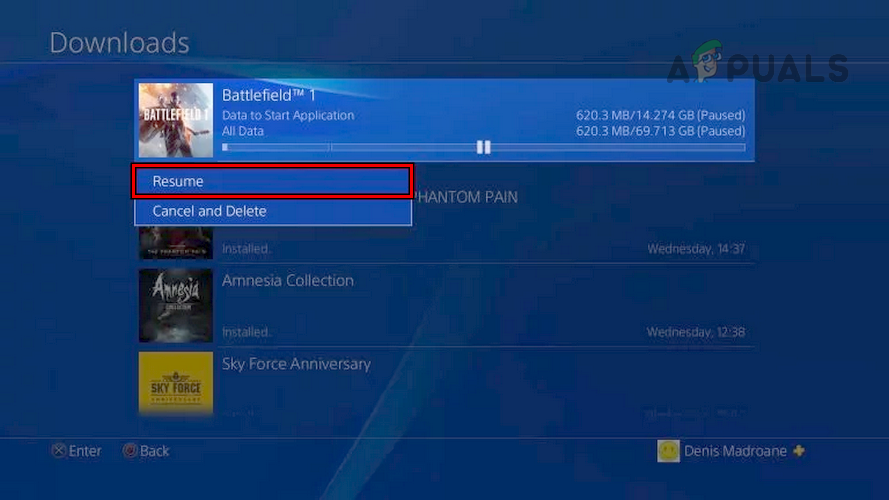 Pause a Download on the PS4 - Then wait for 10 seconds, and afterward, click on Resume.