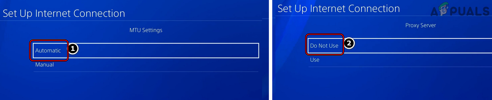 Set Primary and Secondary DNS on PS4 - Then on the MTU Settings menu, select Automatic and for Proxy Server, click on Do Not Use.