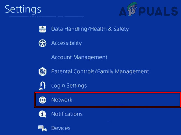 - Launch Settings of your PS4 and open Network.