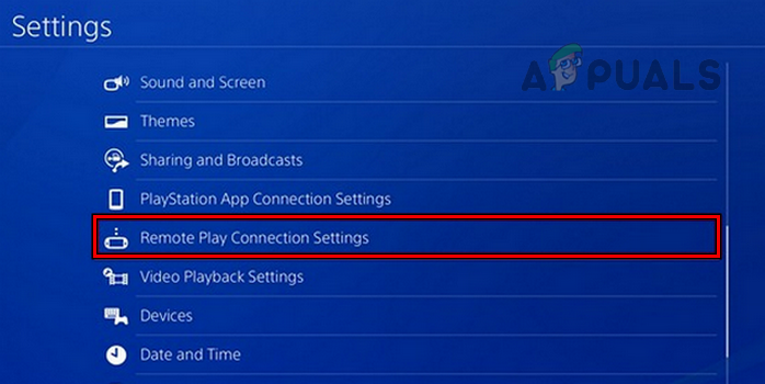 - Launch Settings of your PS4 and open Remote Play Connection Settings.