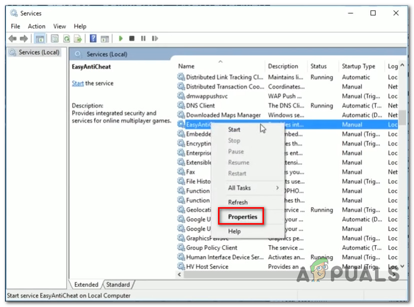 - Easy Anti Cheat service is Disabled – It’s also possible to encounter this issue in situations where the Easy Anti Cheat engine is disabled by manual user interaction or by an optimizing utility. In this case, you can fix the problem by re-enabling the service from the Services screen.