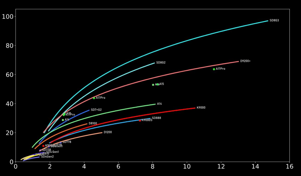 Geekerwan (via Revegnus) recently posted the efficiency numbers for the Adreno 750, and the results are somewhat intriguing in the way that the 8 Gen 3 manages to surpass the 8 Gen 2, and the A17 Pro by quite a bit.