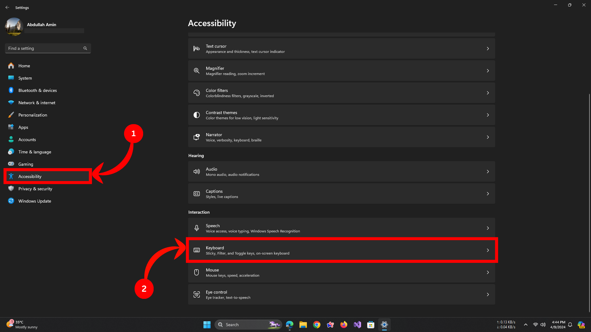 Accessbility, then onKeyboard.
