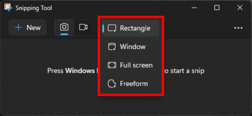 Start Menuor using the keyboard shortcut Windows key + Shift + S. - After initiating a snip, you can select the desired capture mode from the toolbar at the top of your screen.
