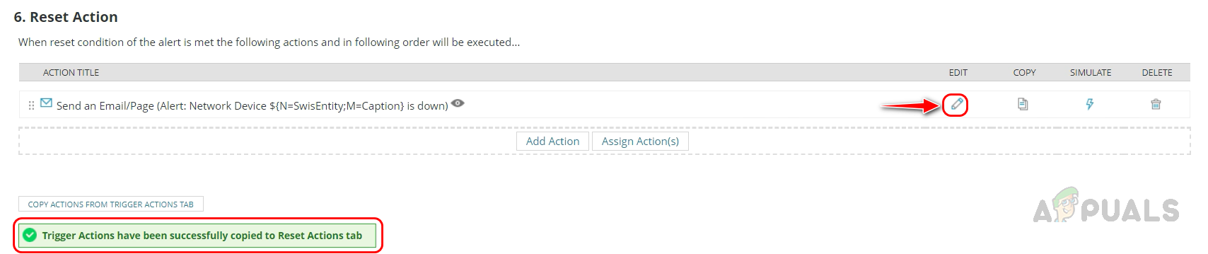 - You can copy the trigger action to reset the action and make a few changes to configure the reset action. Click on Copy Actions from Trigger Action Tab.