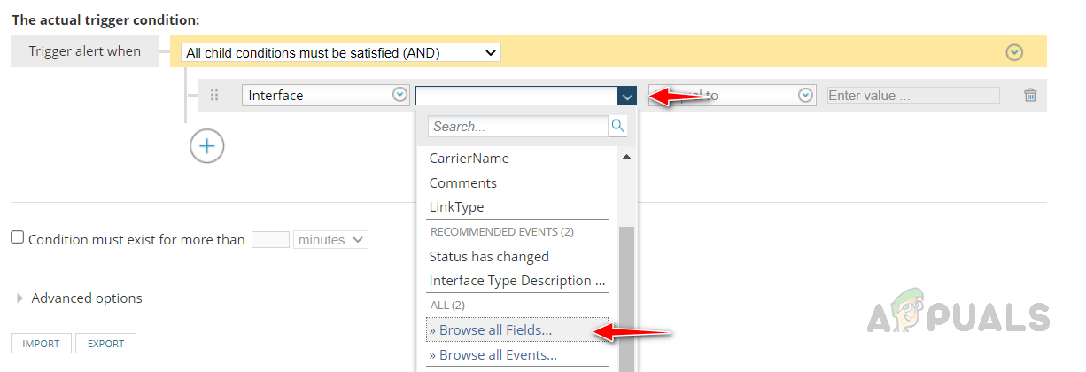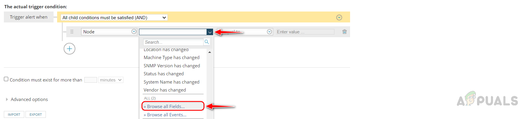 - On the trigger condition section, click on the drop-down list and select Browse All Fields.