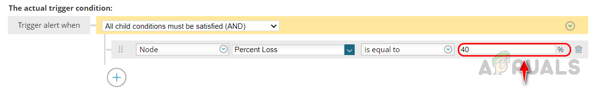 - Now set the threshold value in the text box. The complete alert condition will look like the below.