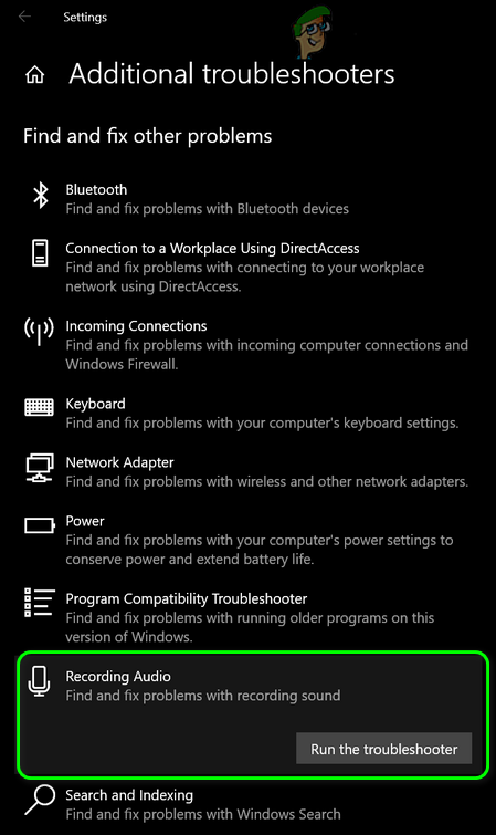 - If the issue persists, run the Recording Audio troubleshooter and check if that resolves the mic issue.