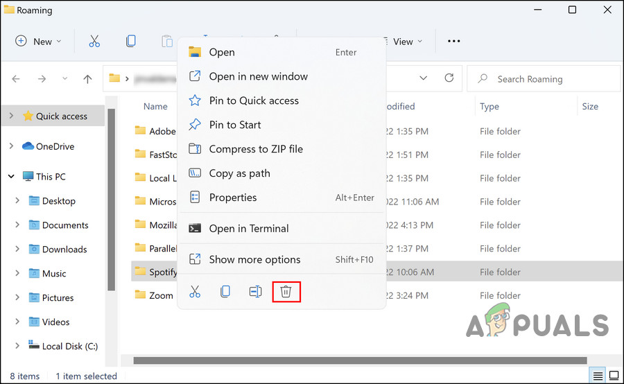 Click on the Spotify folder - Choose Delete from the context menu.
