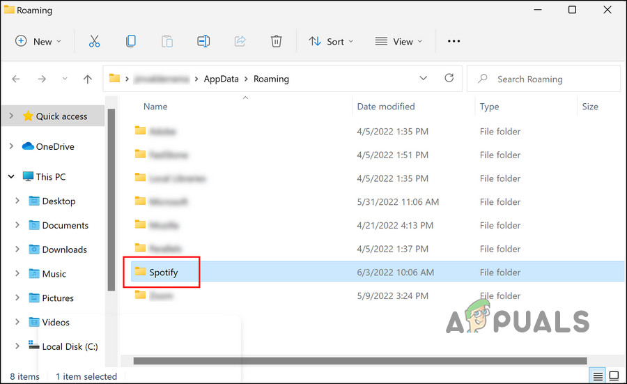 Access the %appdata% location - Locate Spotify in the list of files available and right-click on it.