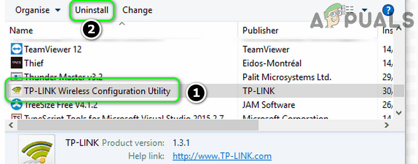 Some of the users reported that they encountered the issue at hand due to the corrupt installation of the TP-Link application or its driver. In this scenario, reinstalling the TP-Link Application and its driver may solve the problem.