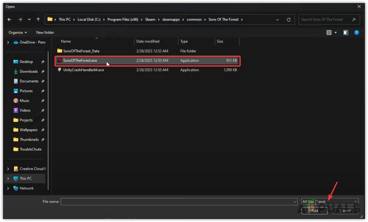 - Then, click Add. Once added, select Sons Of The Forest from the added apps and click Options.