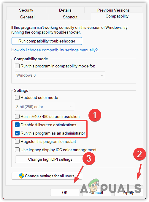 Configuring Compatibility Settings - Once completed, launch the game and observe the result.