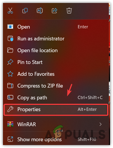 - Go to Properties, then go to Compatibility.