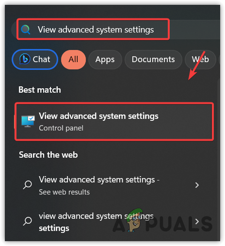 - Click the Start Menu logo and type View Advanced System Settings.
