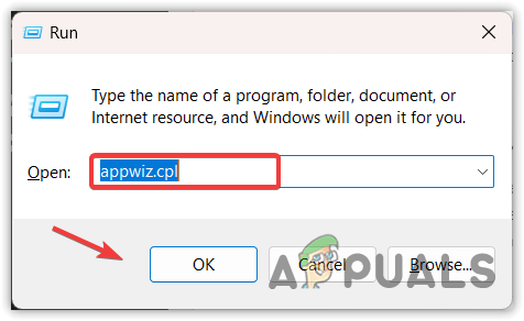 Opening the Run Window - Type appwiz.cpl in the input search box and click OK to navigate.