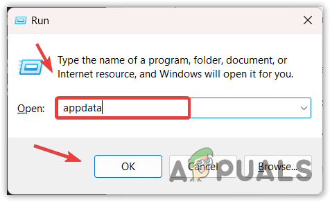 - Enter ‘appdata‘ and press Enter, which will open the AppData folder.