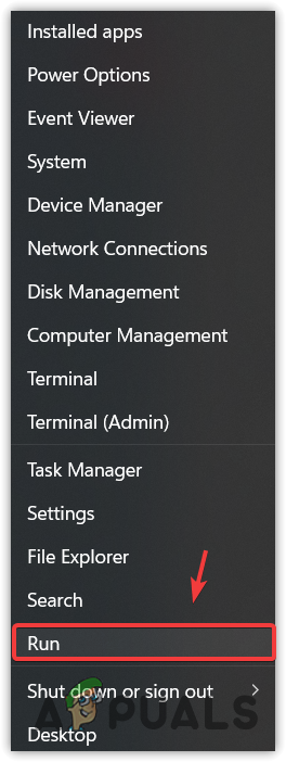 - Right-click the Start Menu and select Run from the options.