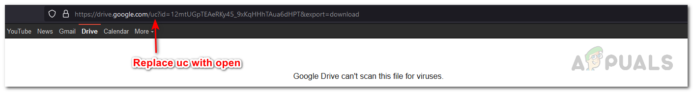 Editing the Download Link by Replacing UC with Open - Plus, remove the &export=download at the end of the URL as well if present.
