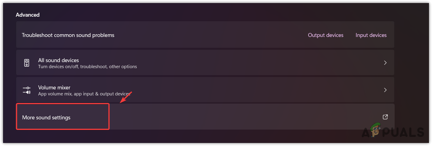 - Scroll down to the bottom and click More Sound settings.