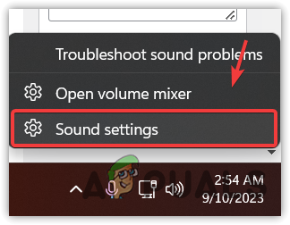 - Right-click the Sound icon from the bottom right and select Sound Settings.