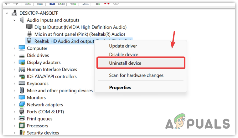 - Right-click the audio driver, and select Uninstall device.