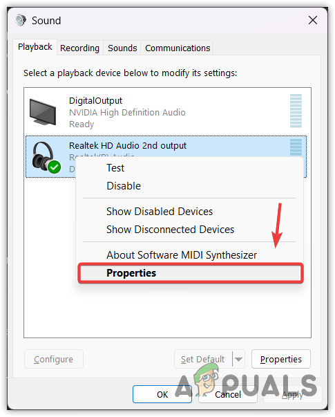 - Here, right-click on your headset device and select Properties.