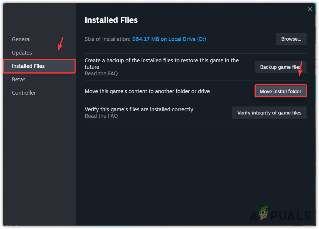 - Go to Installed Files and click Move Install Folder.