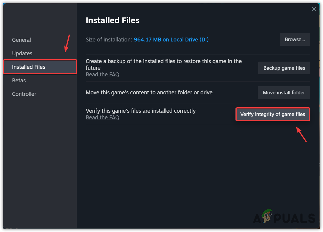 - Then, go to Installed Files and click Verify the integrity of game files.