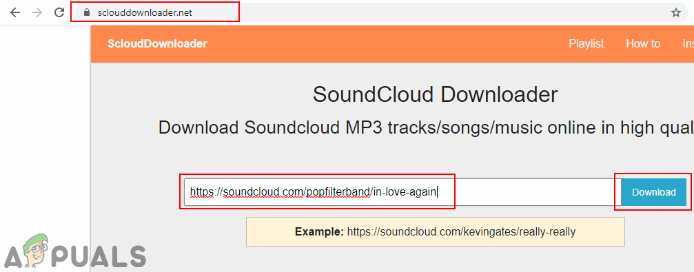 Copying the URL of the song - Now open ScloudDownloader in a new tab and paste the URL in the box. Click on the Download button.