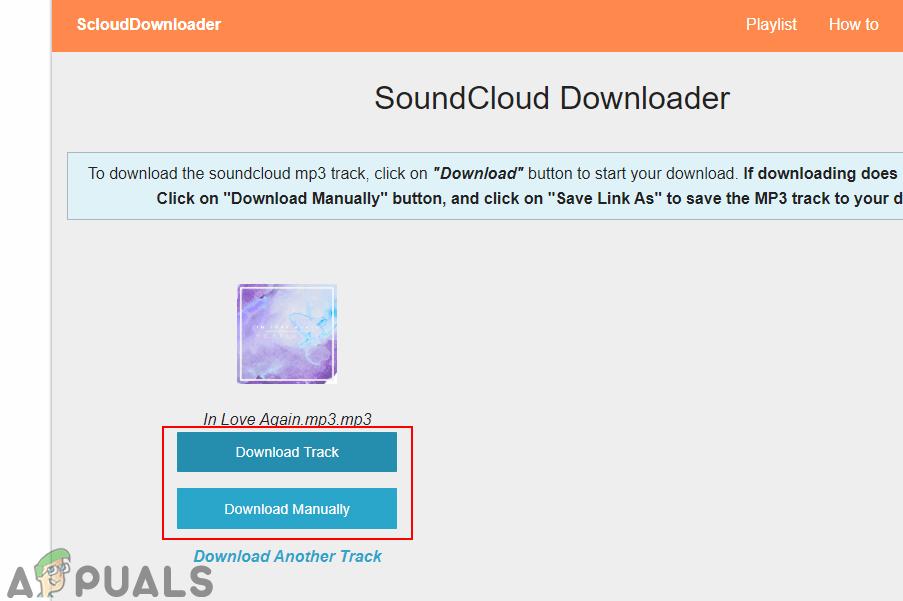 Pasting the URL in the downloading website - You will get two download buttons; the Download Track and Download Manually. The Download Track will automatically download the song. The Download Manually requires right-clicking on it and choosing Save link as an option to download the song.