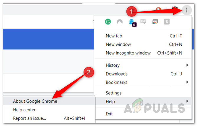 - From the drop-down menu that appears, navigate to Help > About Google Chrome.
