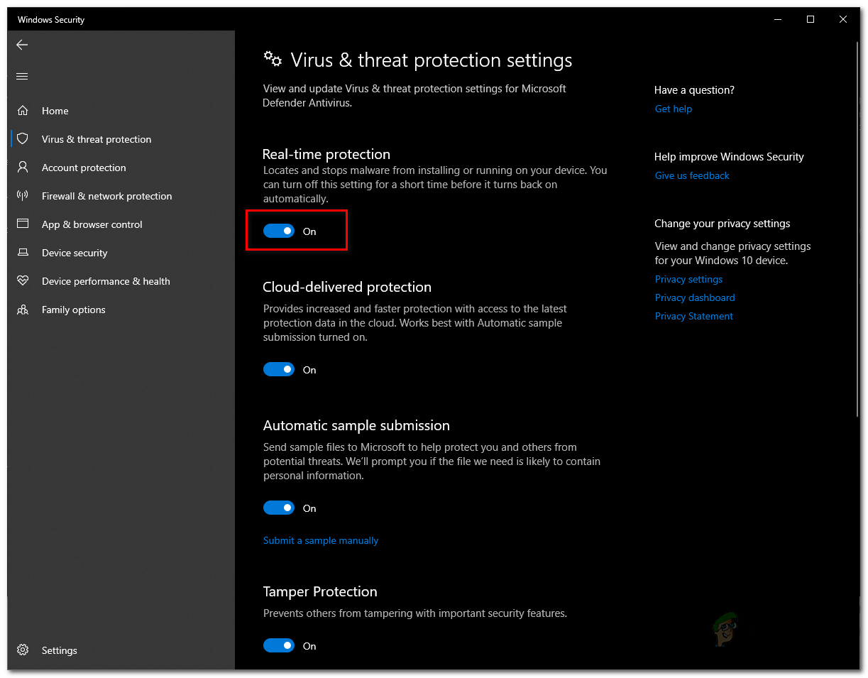If you are casting from a Windows machine and the above solutions have not worked out for you, chances are that your issue is being triggered by the Windows Defender. This can be easily fixed by temporarily disabling real-time protection from the Windows Defender settings when you are about to cast. You can turn it back on once done and you should be good to go. To do this, follow the below instructions: