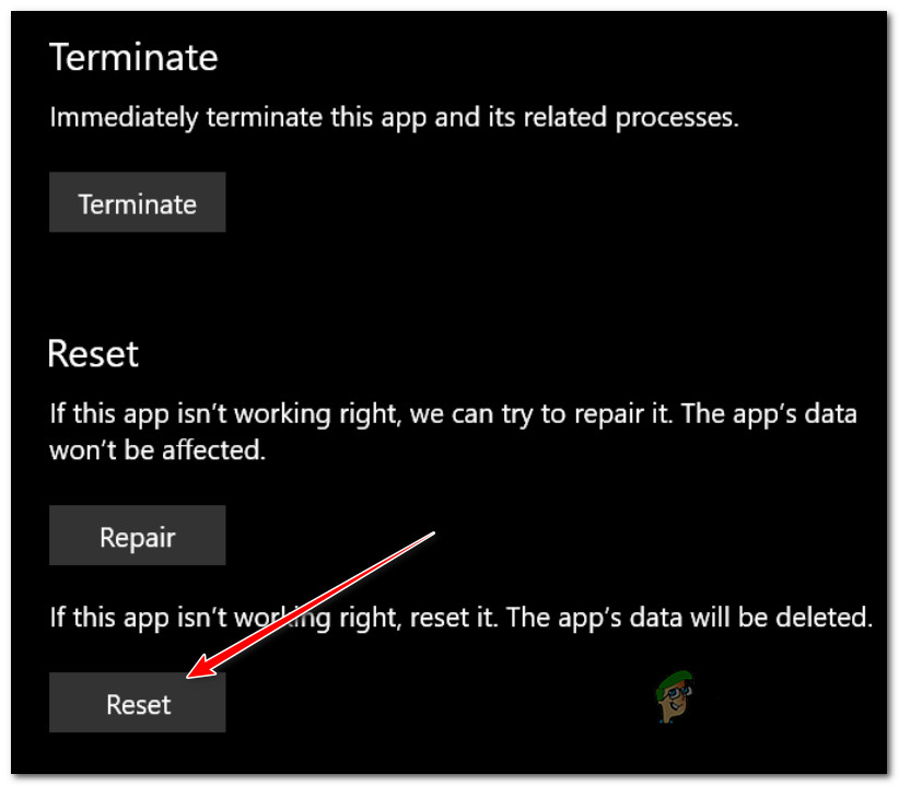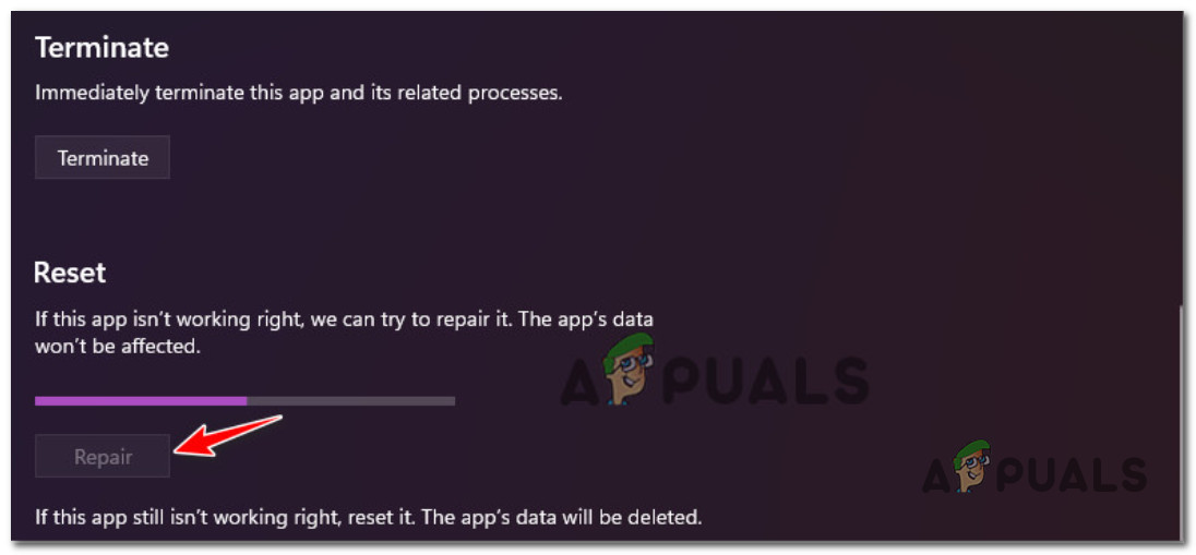 Repair the app - If the problem is still not fixed, try the second mitigation technique by selecting Reset in the same Advanced Options window.