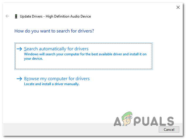 - Outdated sound drivers – Remember that your sound drivers can also be responsible for this issue (mainly if you use a dedicated sound card). Before you dismiss this potential culprit, take the time to use Device Manager to ensure that all your sound drivers’ fleet is updated to the latest version.