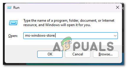- Press the Windows key + R to open up a Run dialogue box. Next, type ‘ms-windows-store:’ inside the text box, then press Ctrl + Shift + Enter to open up the Microsoft Store with admin access.