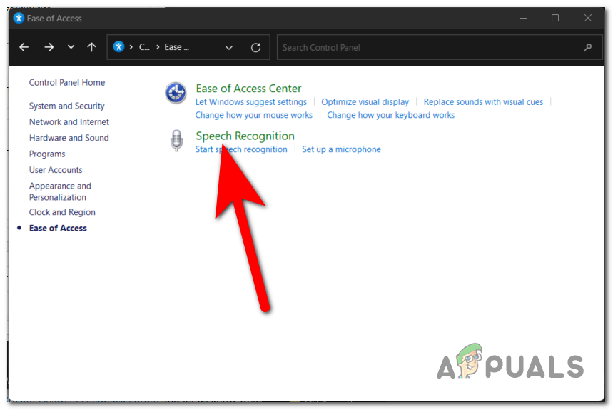 - After you are at the next screen, locate Speech Recognition and click on it.