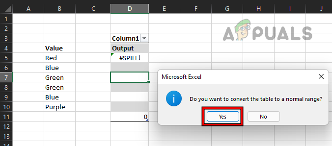 Confirm to Convert the Excel Table to Range - Now Excel will convert the table to a range and that may clear the #spill error.
