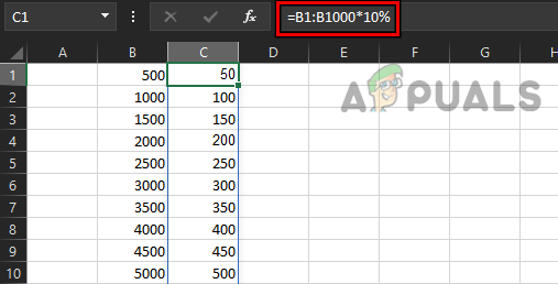 =B1:B1000*10%