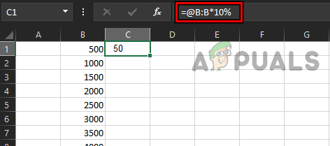 - This will trigger a #spill error. Now, add @ just before B in the formula, as under: